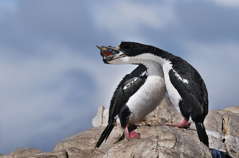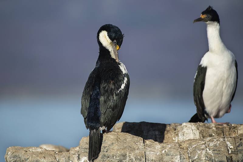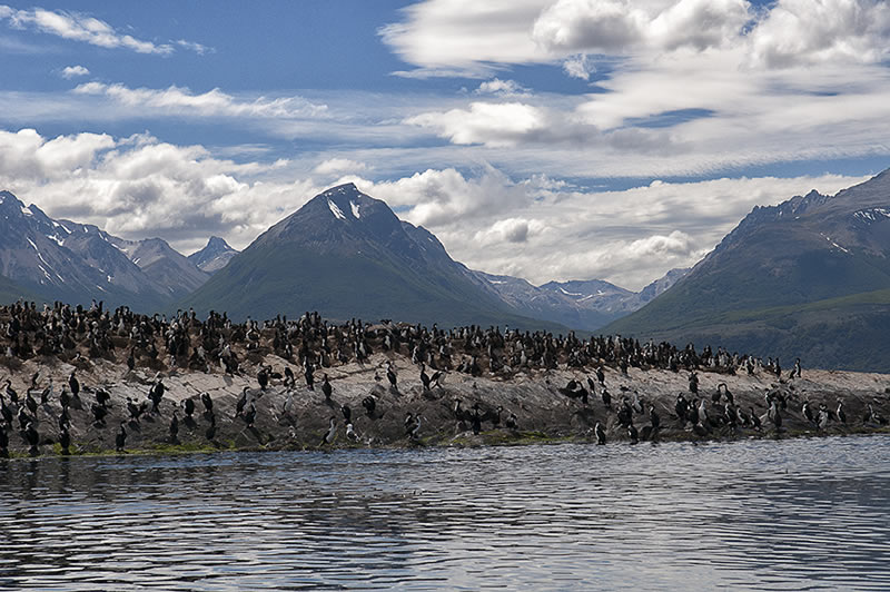 Bird Island is a rocky headland surrounded by water where a colony of king shags and imperial shags lives all year long. During summer, we can see them nesting. We can also find kelp gulls, dolphin gulls, snowy sheathbills, flightless steamer ducks, and South American terns among the shags.